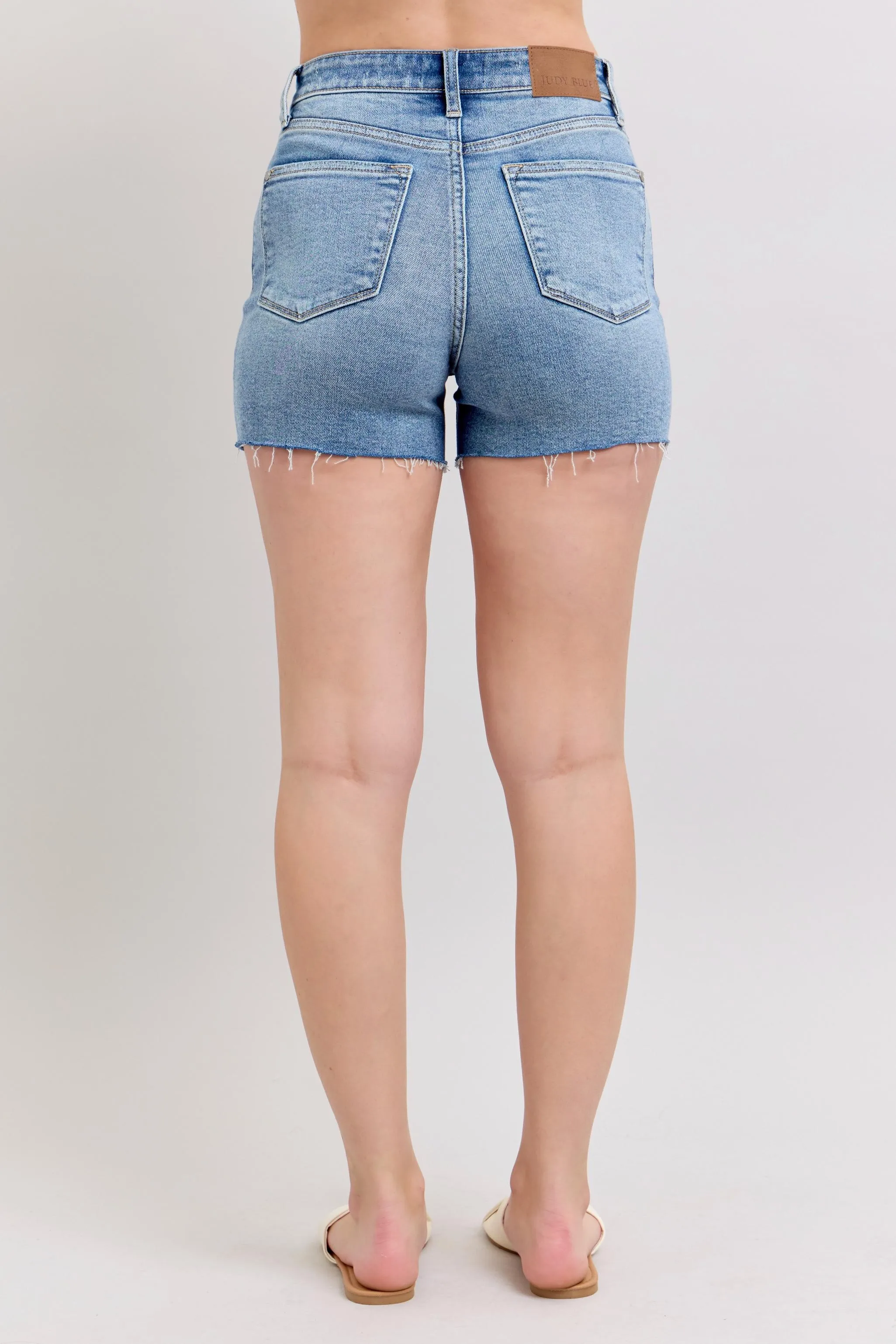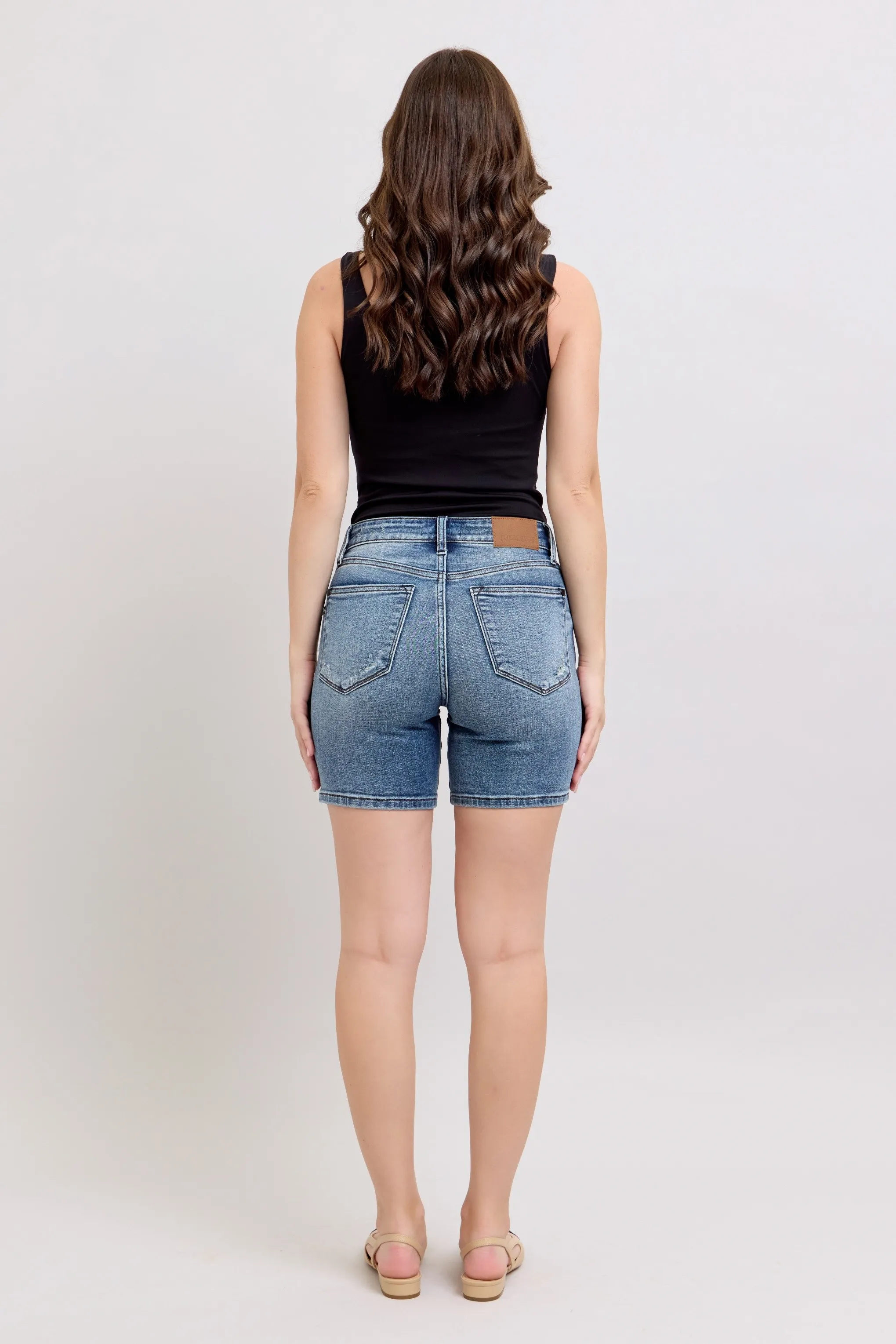Judy Blue Full Size High Waist Denim Shorts W/stitch Over Destroy Detail Plus Size