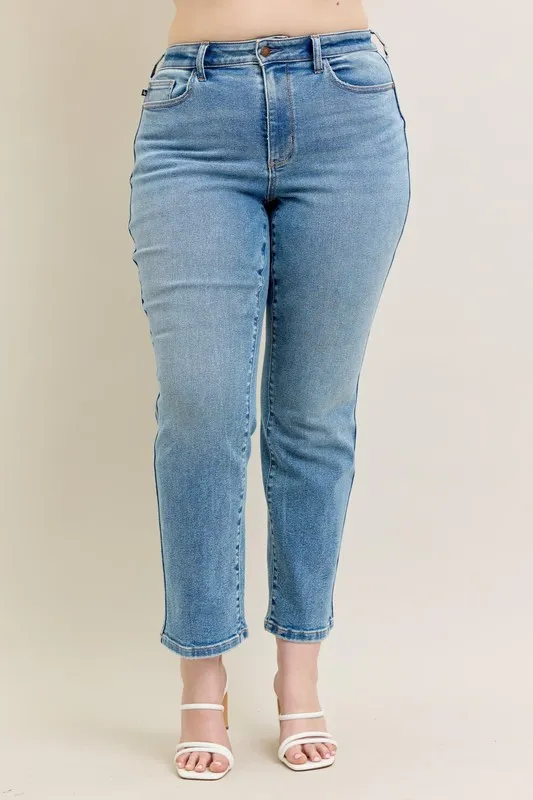 Judy Blue Full Size Hw Mineral Wash Destroy 90's Straight Jeans Plus Size