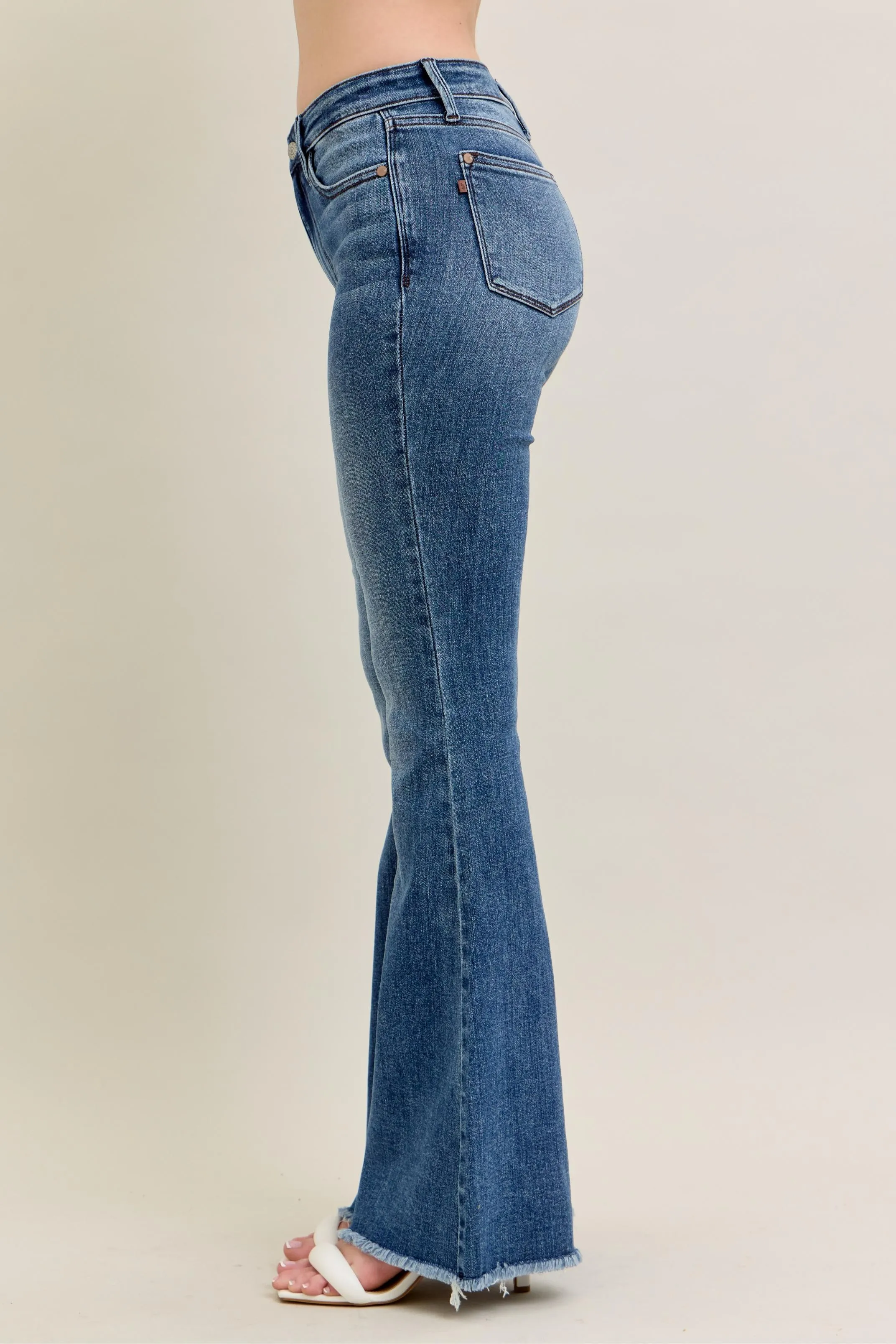 Judy Blue Full Size Mr Vintage Wash Flare Jeans W/ Destroy and Fray Hem Plus Size
