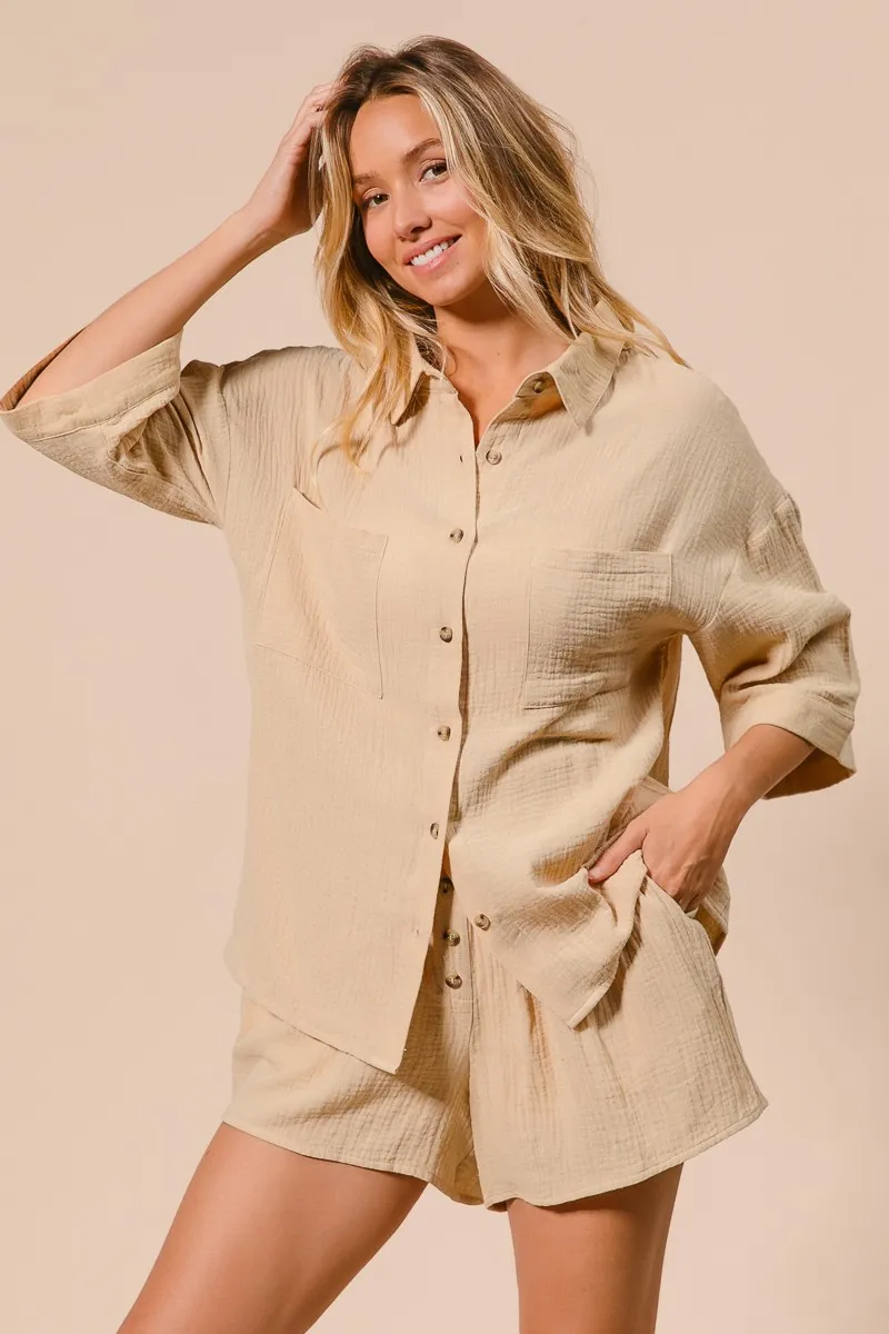 Zenana Woven Acid Crinkle Washed Cami & Pants 2 Piece Set